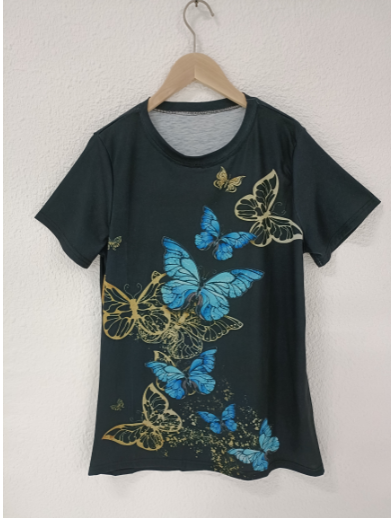Black Tummy Coverage Dazzle Colorful Print T Shirt