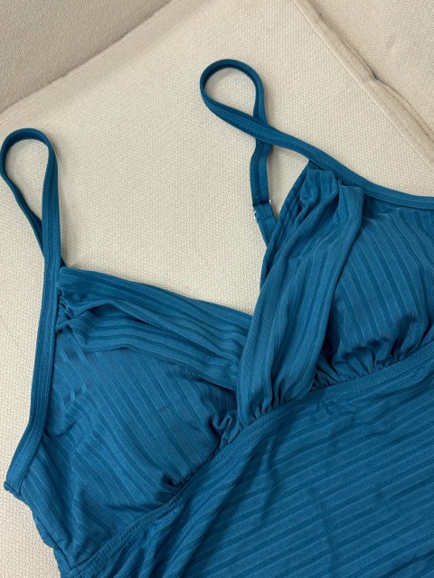 Tummy Coverage Mid Waisted Striped Light Blue Tankini Set