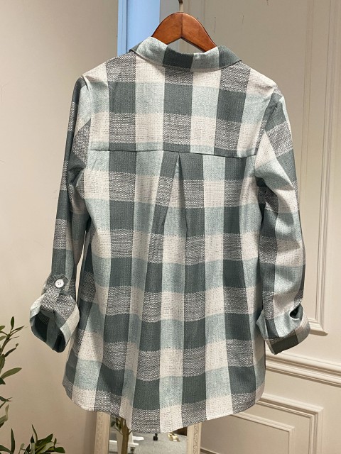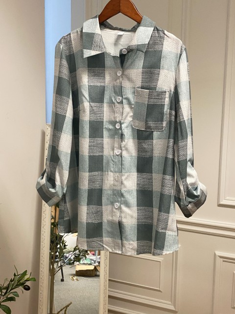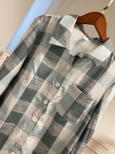Light Blue Tummy Coverage Plaid Long Sleeve Shirt