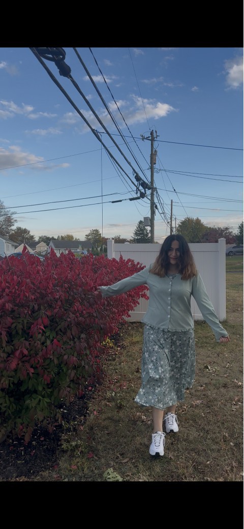 Home  /  Dresses  /  Sage Green Ditsy Floral Print Dress and Cardigan