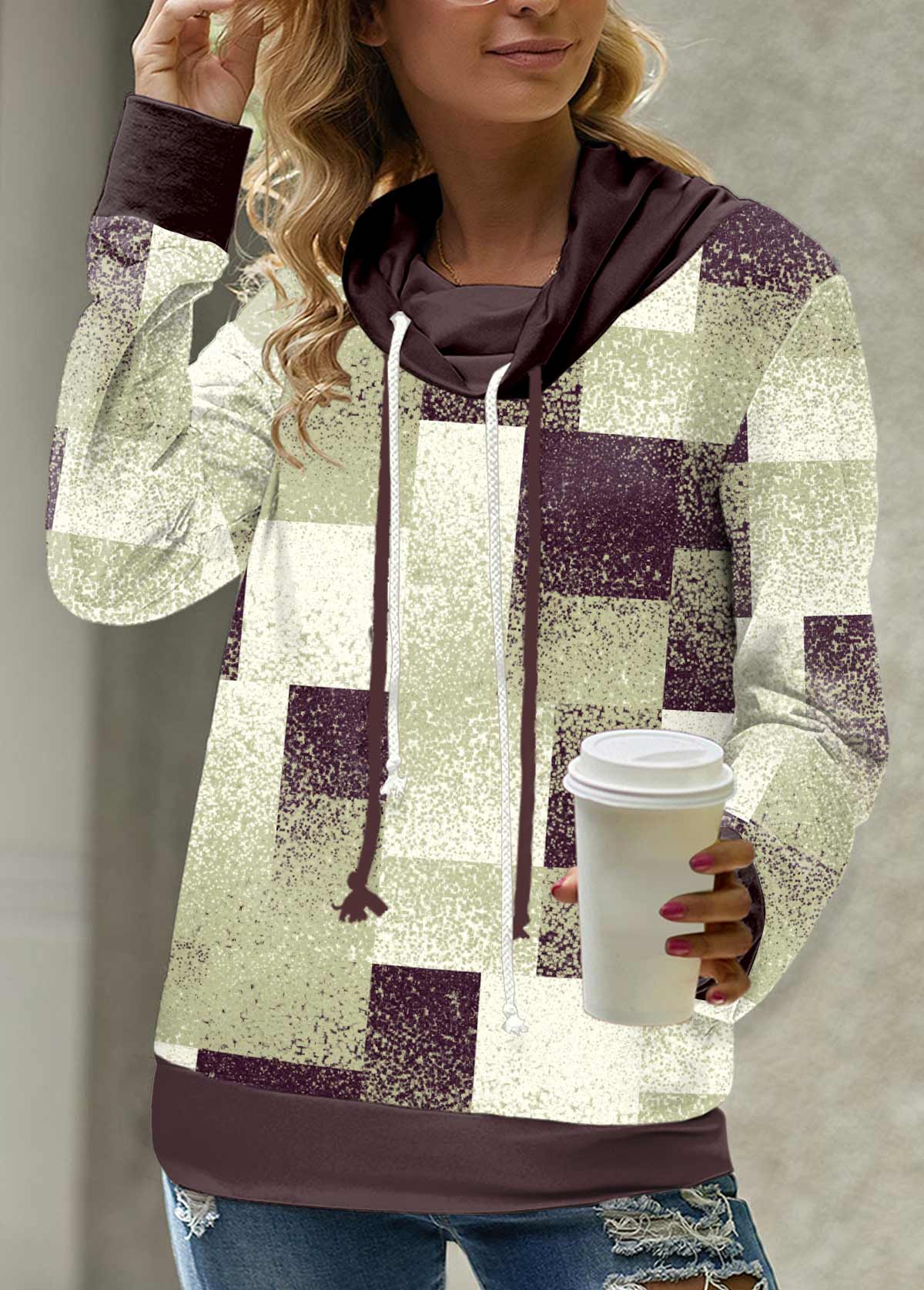 women's clothes / Tops / Sweatshirts&Hoodies  /  Sage Green Patchwork Geometric Print Long Sleeve Sweatshirt