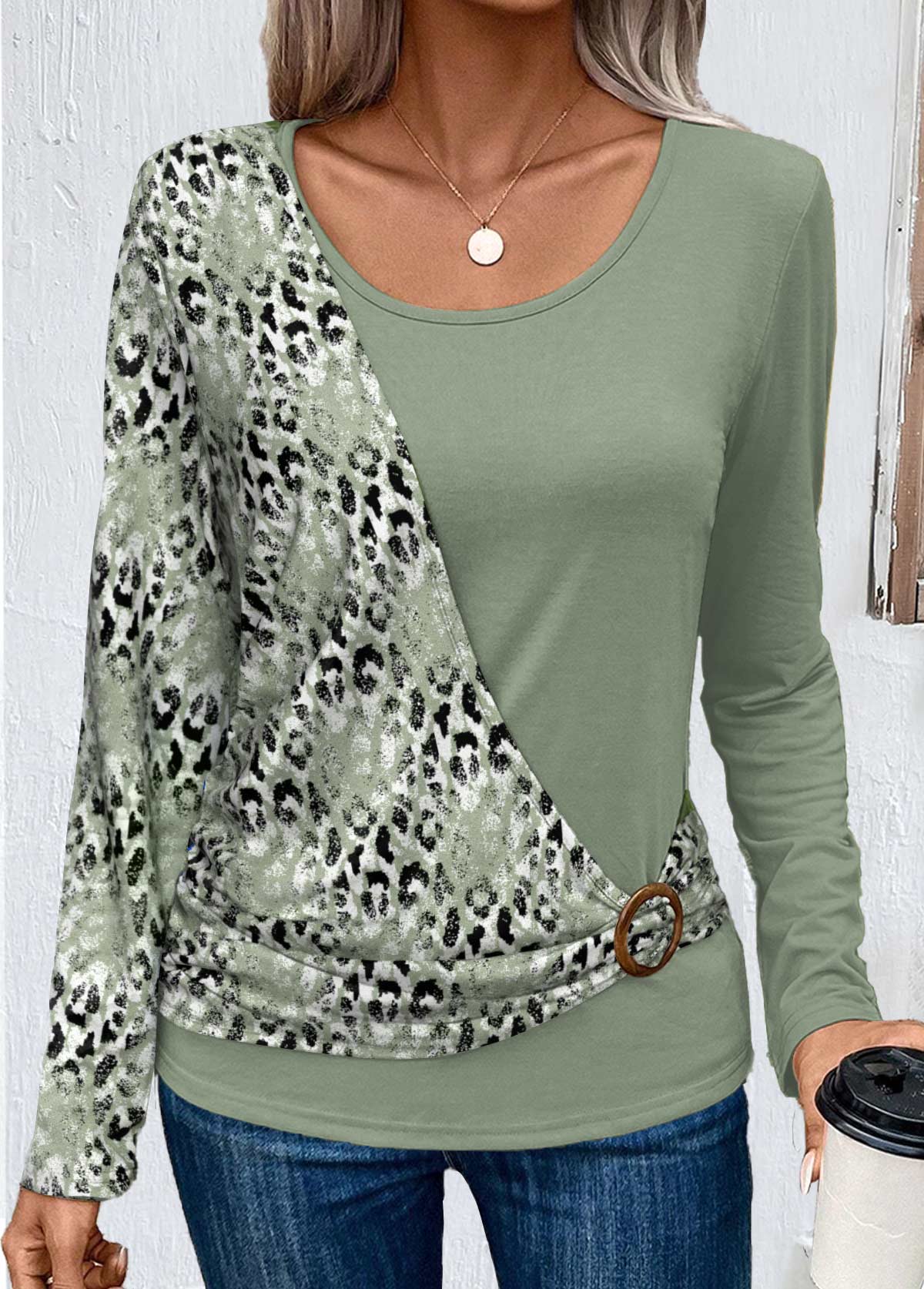 Sage Green Tummy Coverage Short Sleeve T Shirt