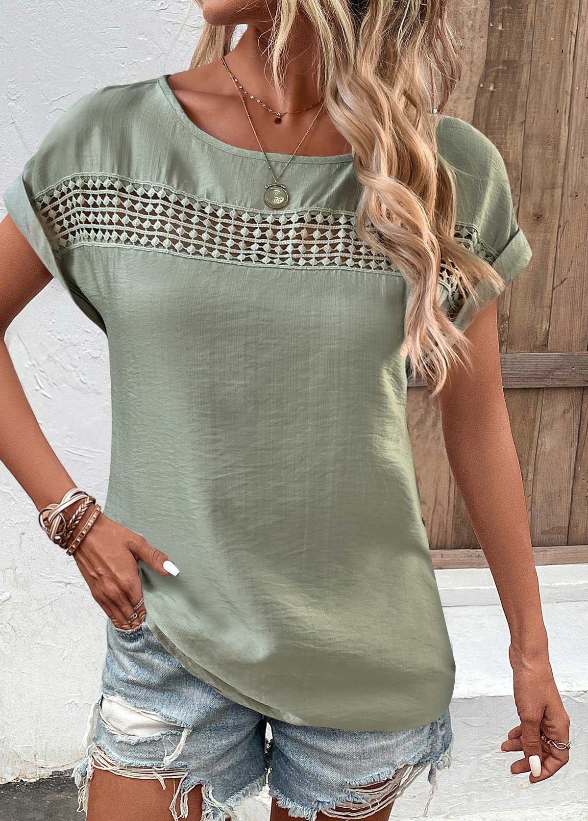 women's clothes / Tops / Blouses  /  Sage Green Patchwork Short Sleeve Boat Neck Blouse