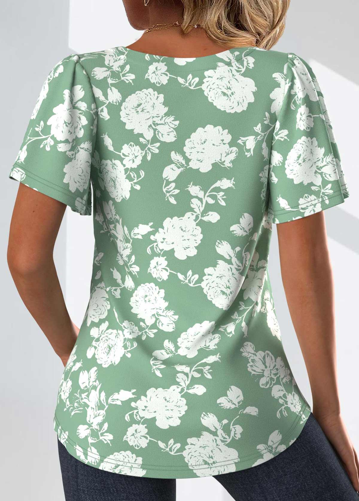 Mint Green Geometric Print Tummy Coverage Short Sleeve Blouse