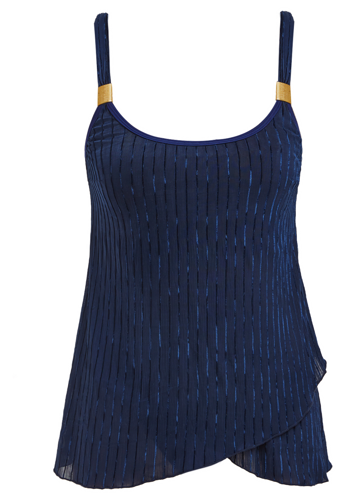 Tummy Coverage Mid Waisted Striped Navy Tankini Set