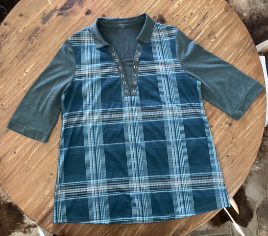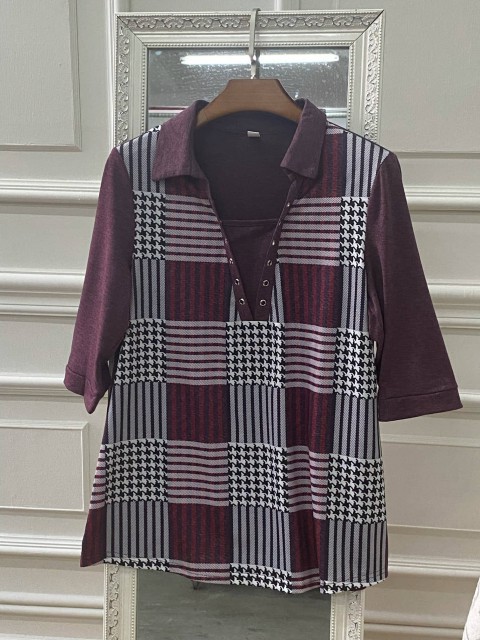 Multi Color Button Plaid Short Sleeve Blouse