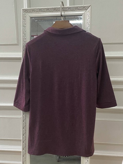 Wine Red Tummy Coverage Long Sleeve Split Neck Shirt
