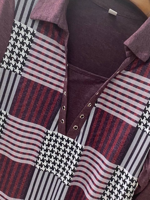 Pink Button Tummy Coverage Plaid Long Sleeve Shirt
