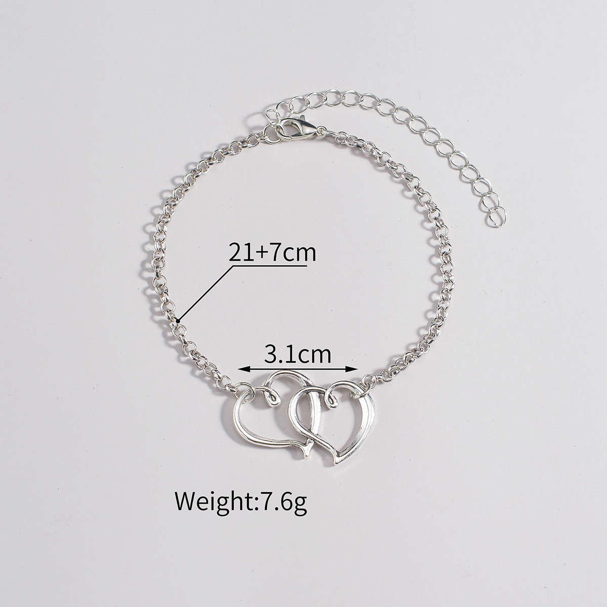 Silver Color Heart Alloy Detail Anklet