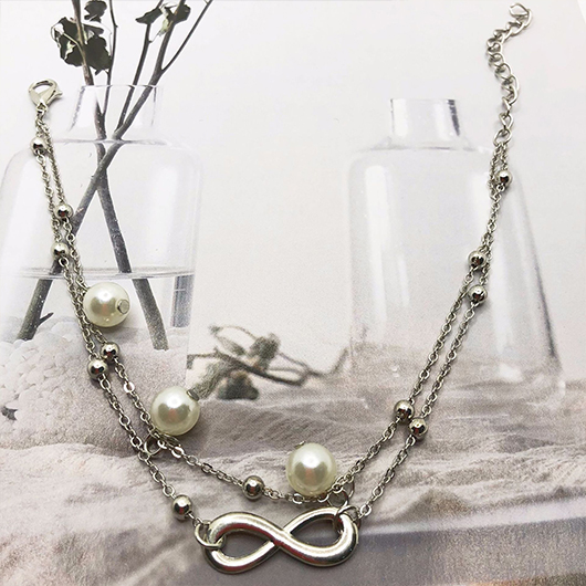 women's clothes / Jewelry / Anklets  /  Silvery White Pearl Layered Alloy Anklet