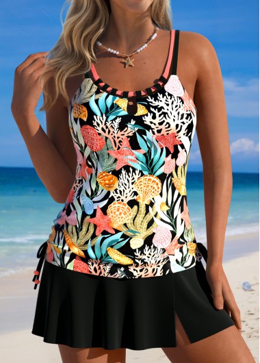 Criss Cross Mid Waisted Marine Life Print Tankini Set