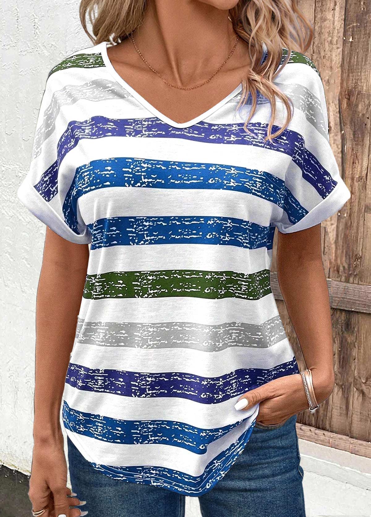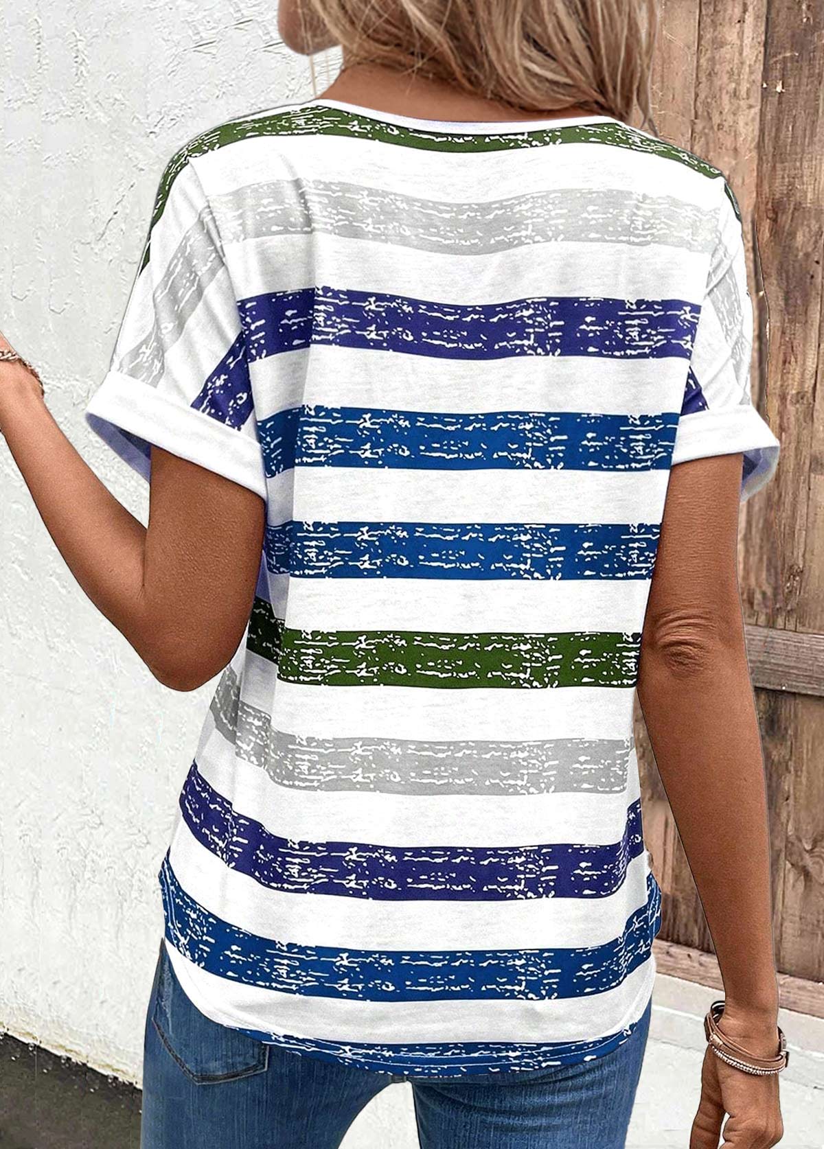 Multi Color Bowknot Striped Short Sleeve T Shirt
