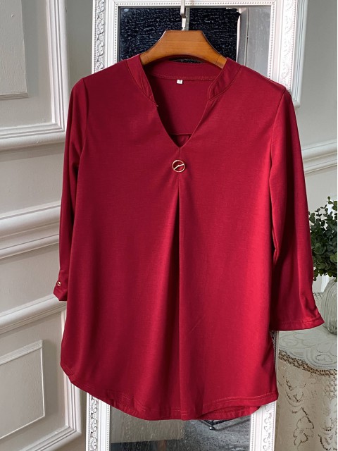 Christmas Wine Red Button Long Sleeve T Shirt