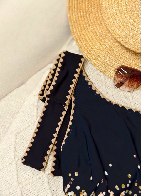 Lace Patchwork Black Bikini Set With Matching Cover Up