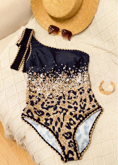 Cut Out Marine Life Print Cyan One Piece Swimwear