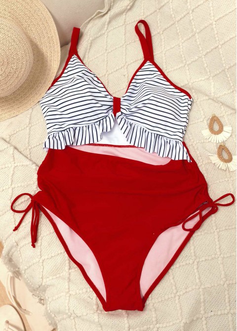 Criss Cross Multi Stripe Print One Piece Swimwear