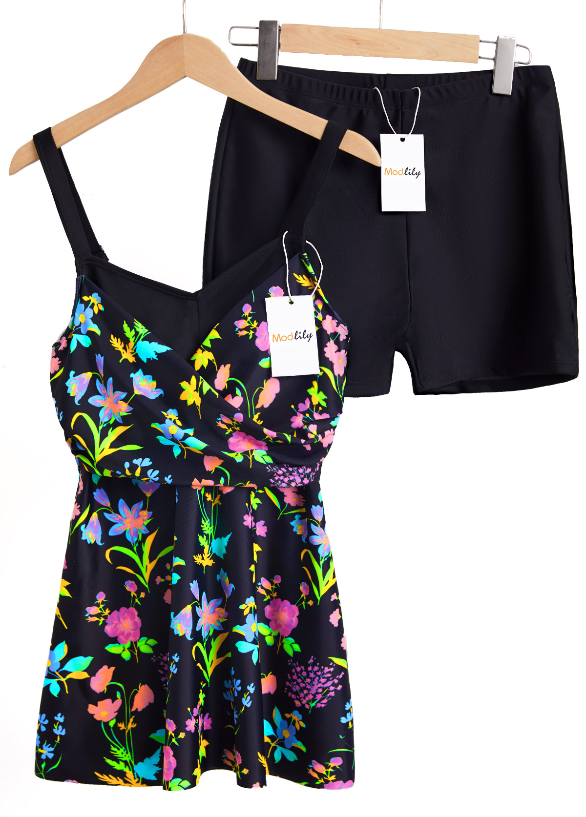 Tummy Coverage Mid Waisted Floral Print Tankini Set
