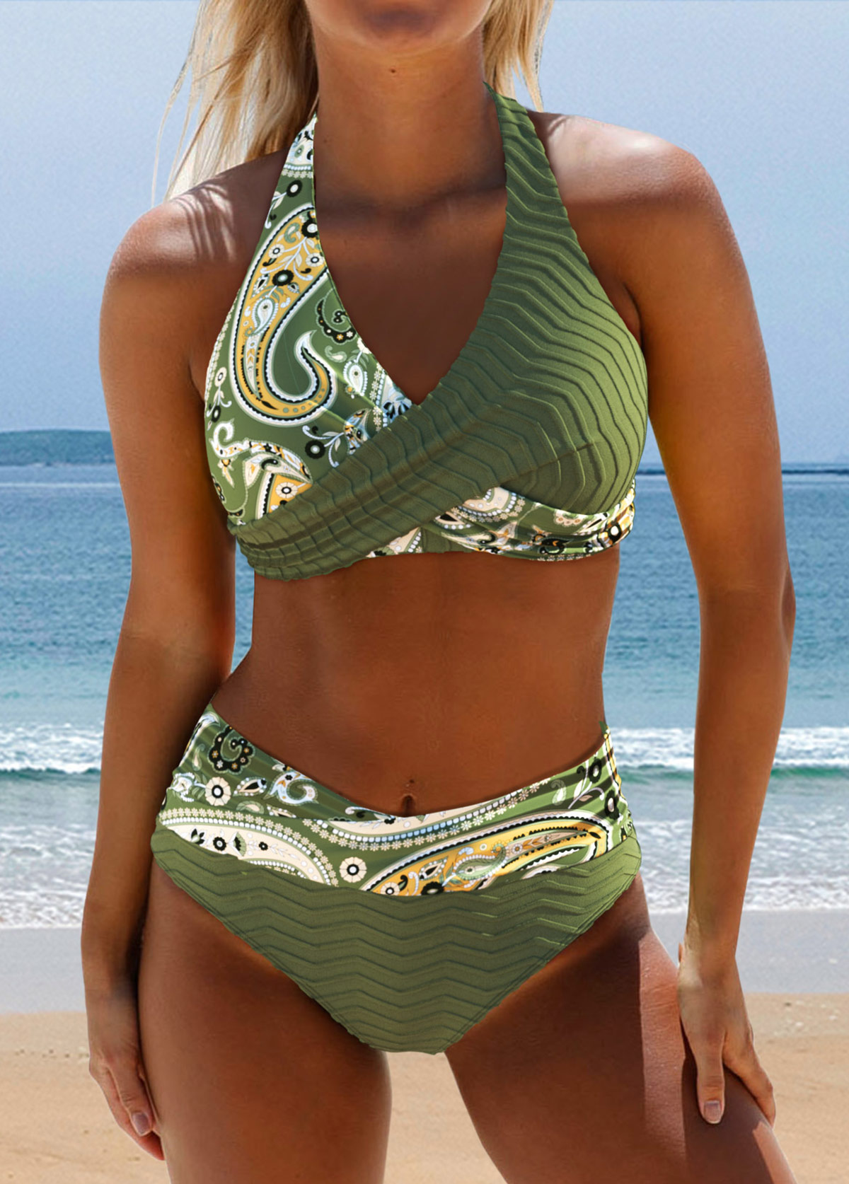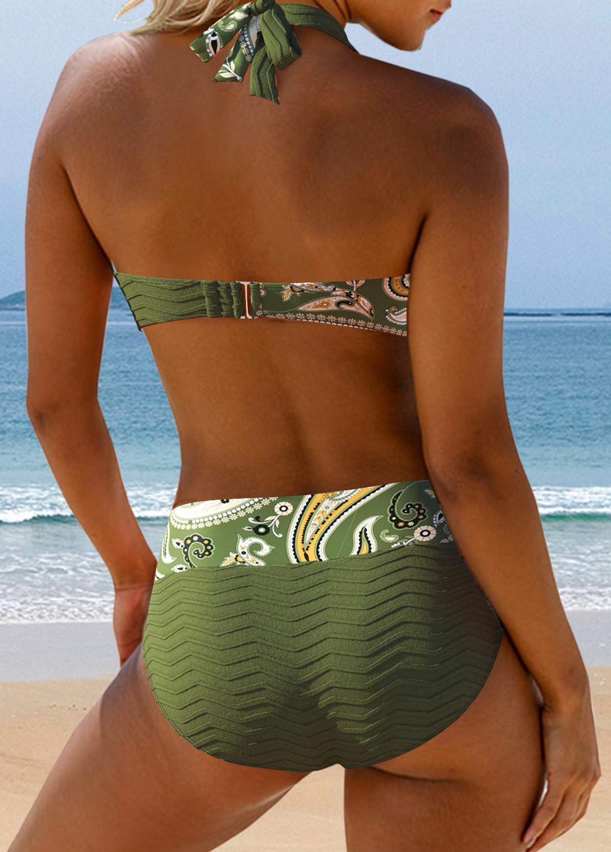 Mint Green Low Waisted Two-piece Bohemian Print Bikini Set