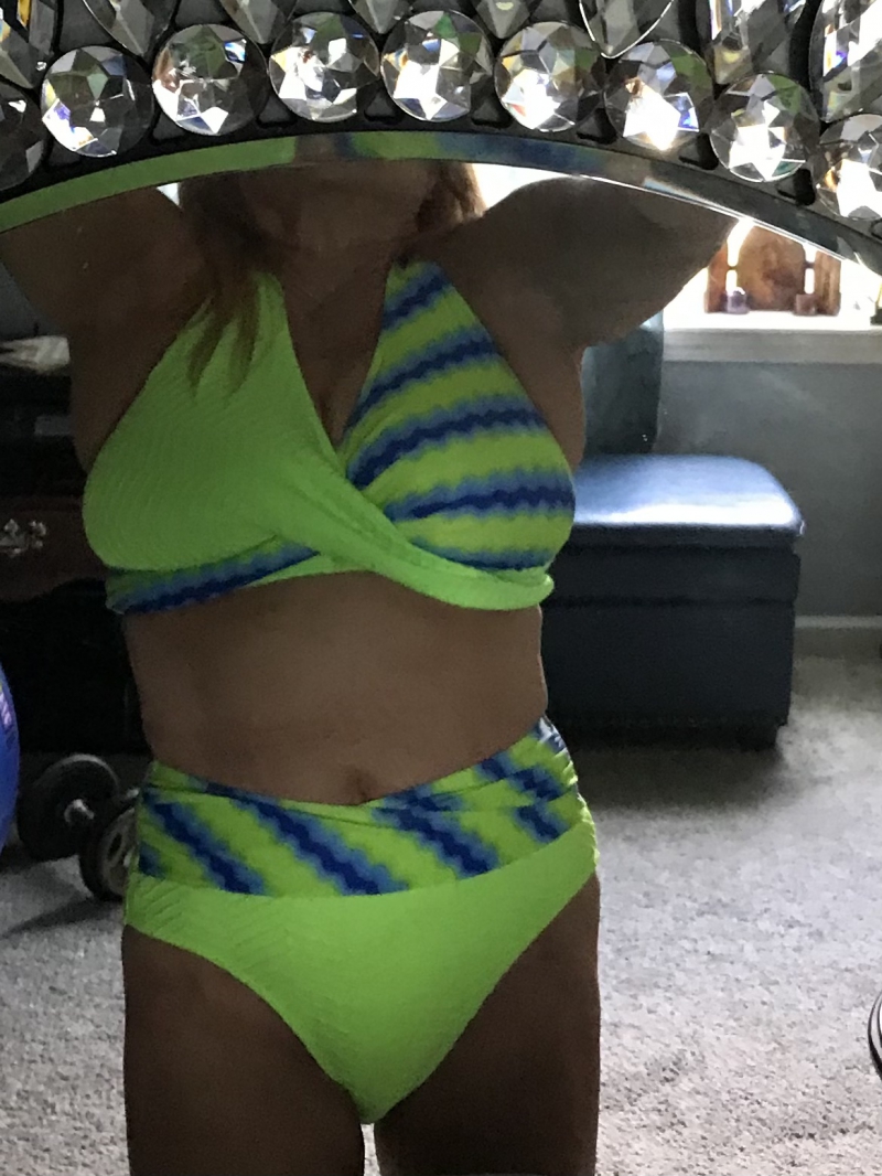 Ruched Mid Waisted Striped Multi Color Bikini Set