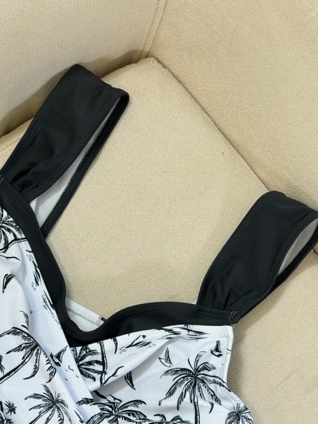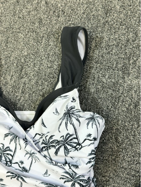 Tummy Coverage Tropical Plants Print Black Tankini Top
