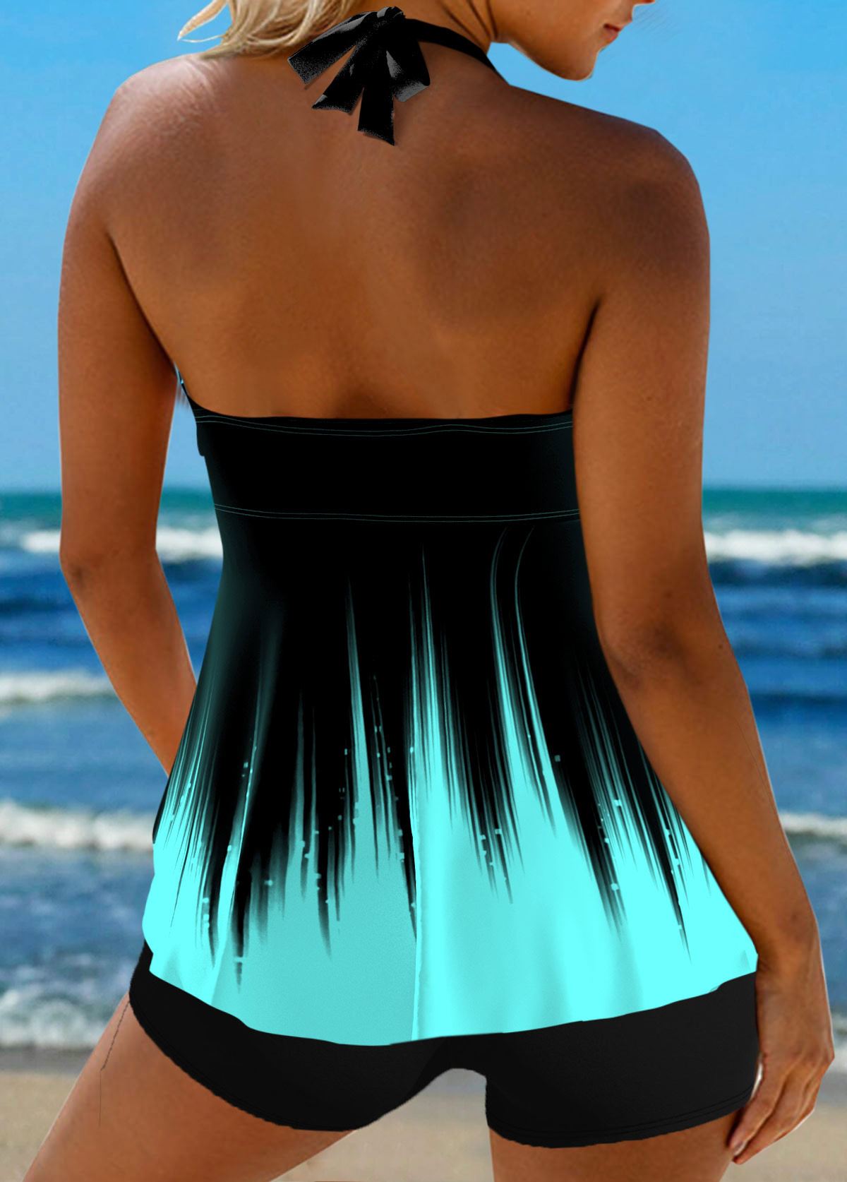 Cyan Mid Waisted Tummy Coverage Tankini Top
