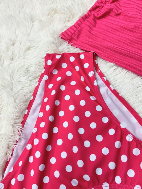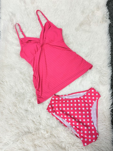 • Surplice Polka Dot Hot Pink Tankini Set | thumb picture