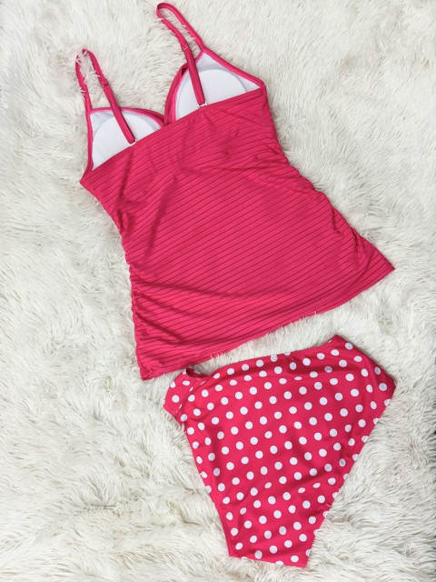 Home  /  Swimwear  /  Tankinis  /  Tankini Sets  /  Surplice Polka Dot Hot Pink Tankini Set