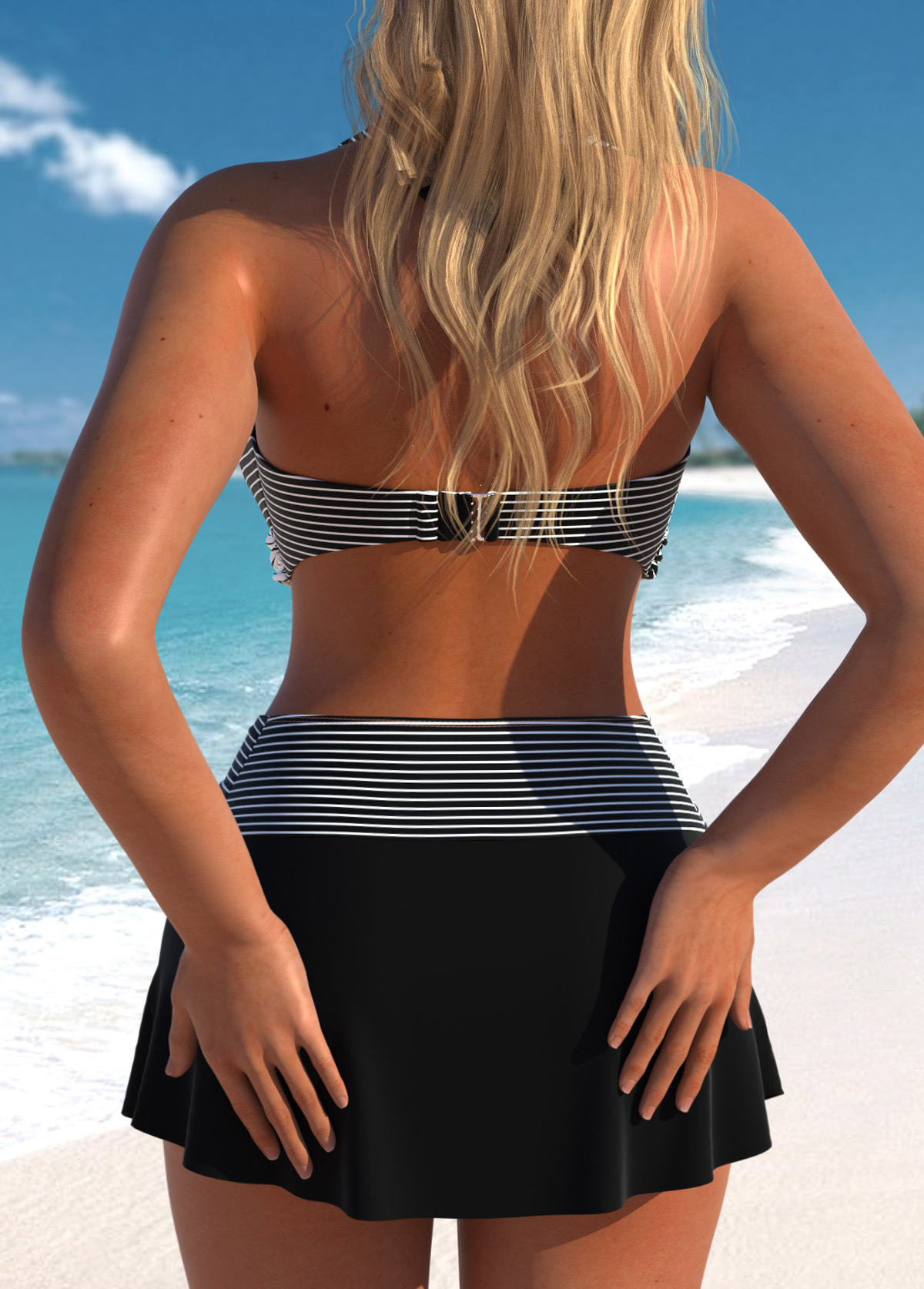 Pull On Mid Waisted Tribal Print Black Bikini Set