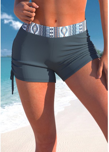 Added Successfully Mid Waisted Tribal Print Dusty Blue Swim Shorts