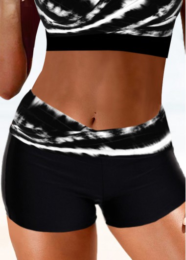 Added Successfully Mid Waisted Tie Dye Print Black Swim Shorts