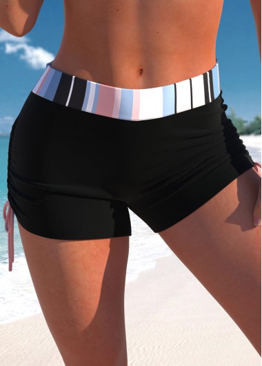 Added Successfully Mid Waisted Black Drawstring Side Swimwear Shorts