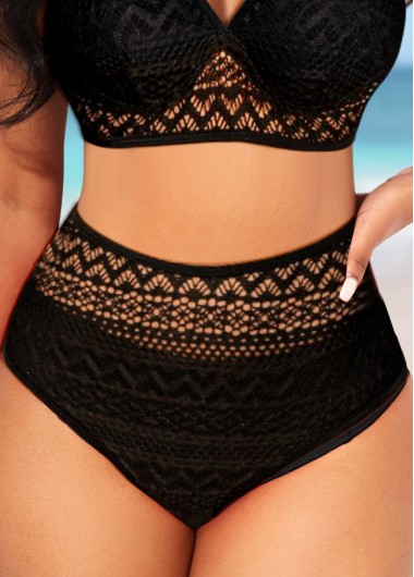 Added Successfully High Waisted Black Hollow Bikini Bottom