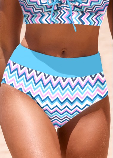 Added Successfully Mid Waisted Chevron Print Blue Bikini Bottom