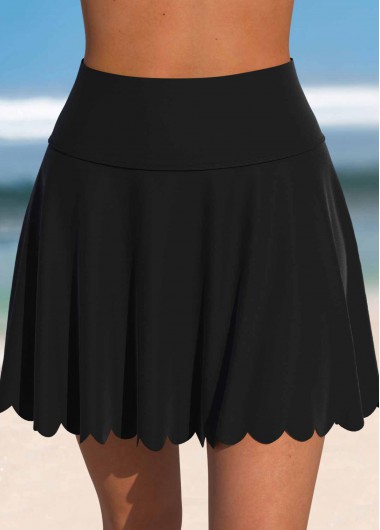 Added Successfully High Waisted Black Scalloped Hem Swim Skirt