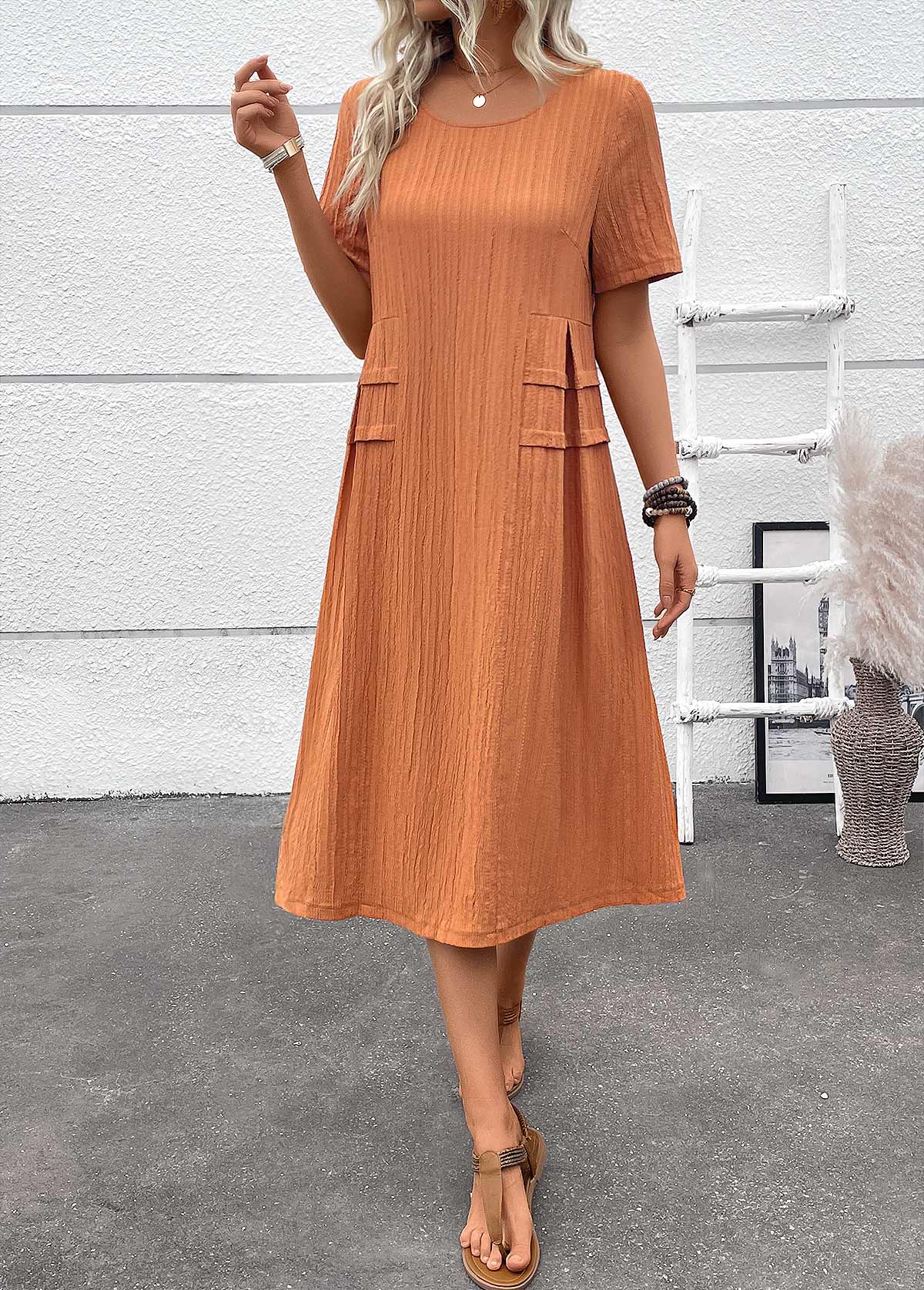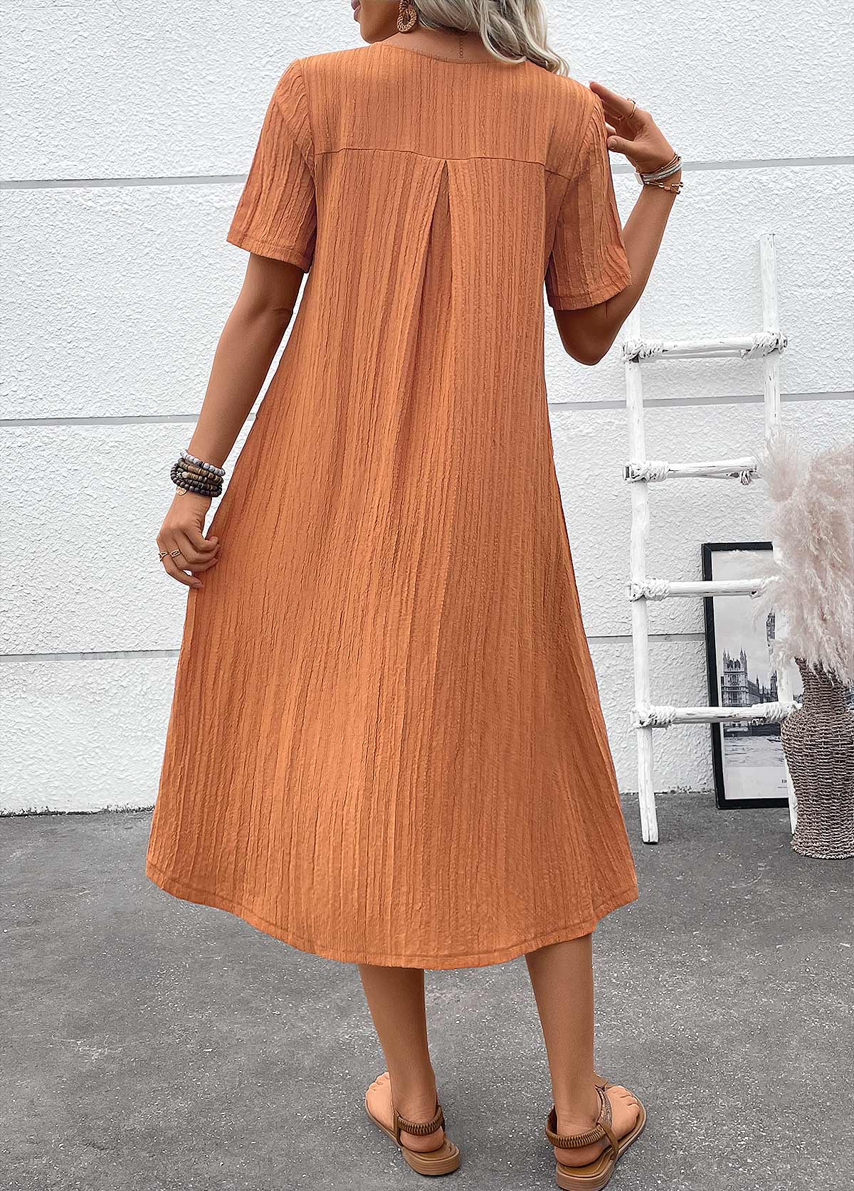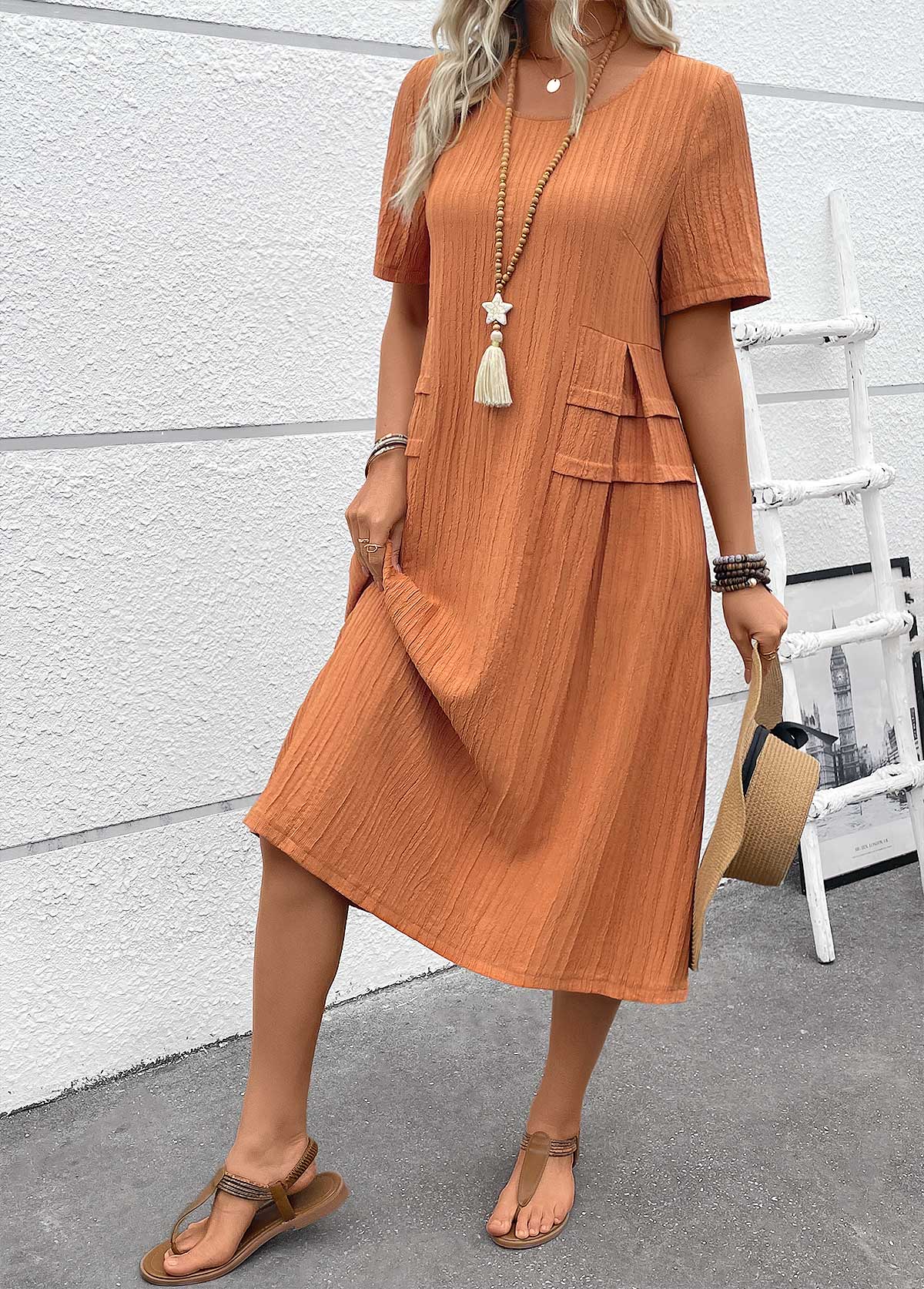 Dusty Blue Striped Shirred Short Sleeve Round Neck Dress