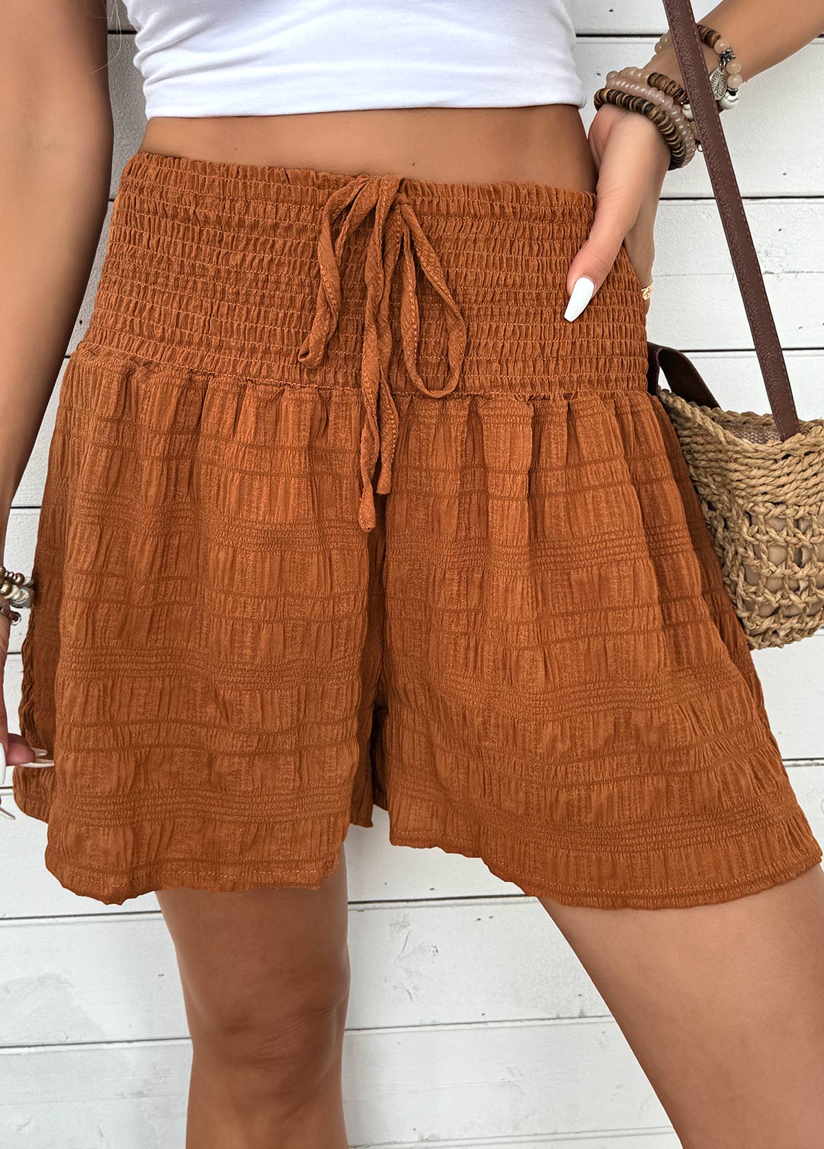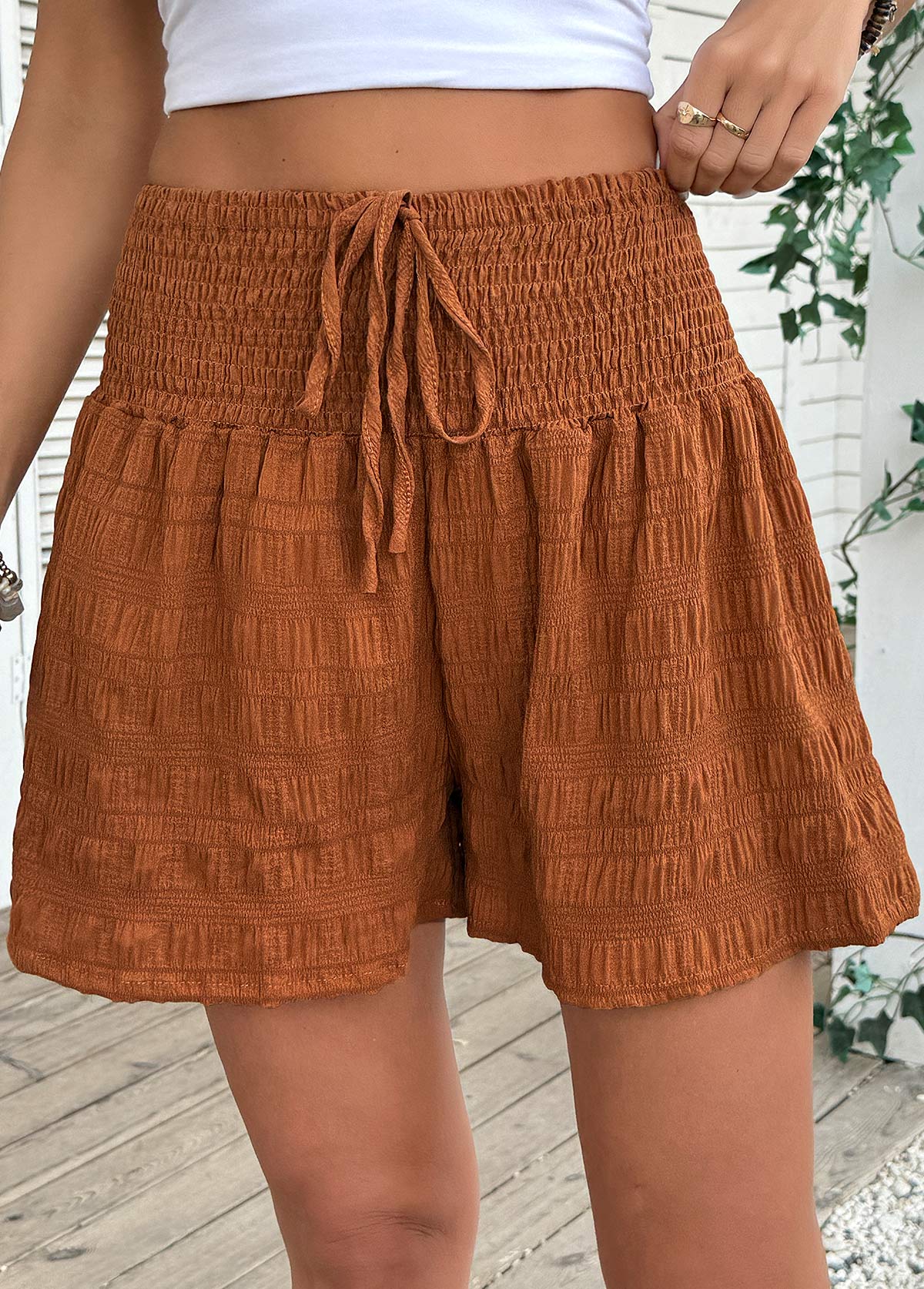 women's clothes / Bottoms / Shorts  /  Terracotta Wide Leg Elastic Waist High Waisted Shorts