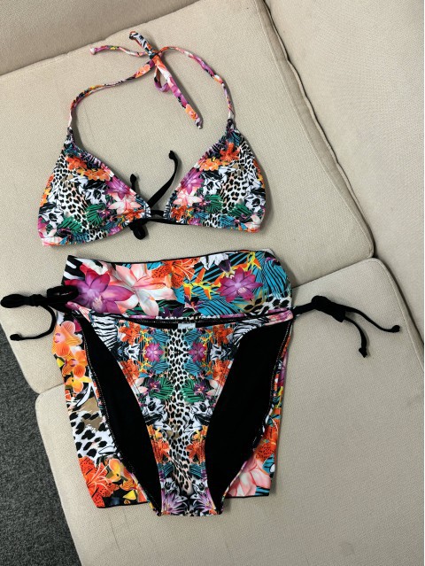 Random Floral Two-Piece One Piece Swimwear and Skirt
