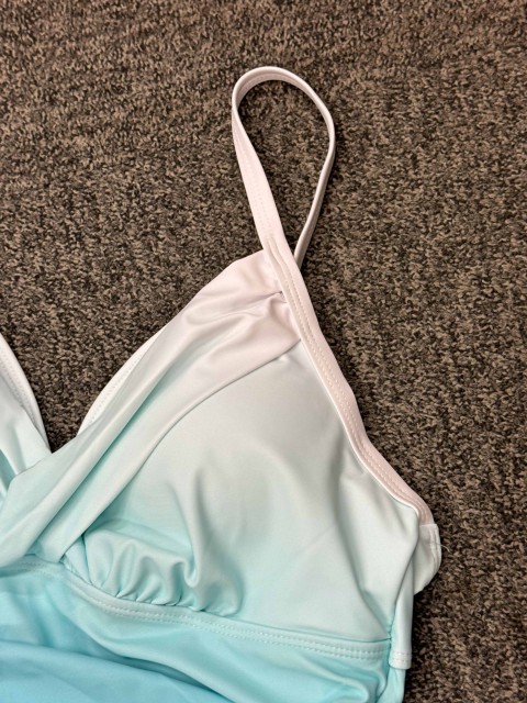 V-Neck Lace Cyan One Piece Swimwear and Bra