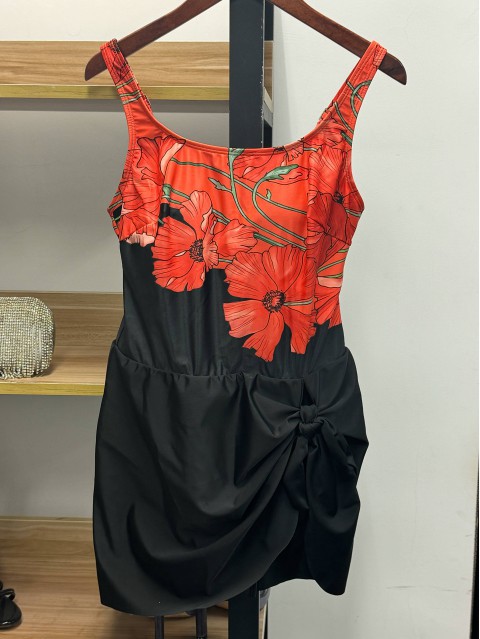 Random Floral Two-Piece One Piece Swimwear and Skirt