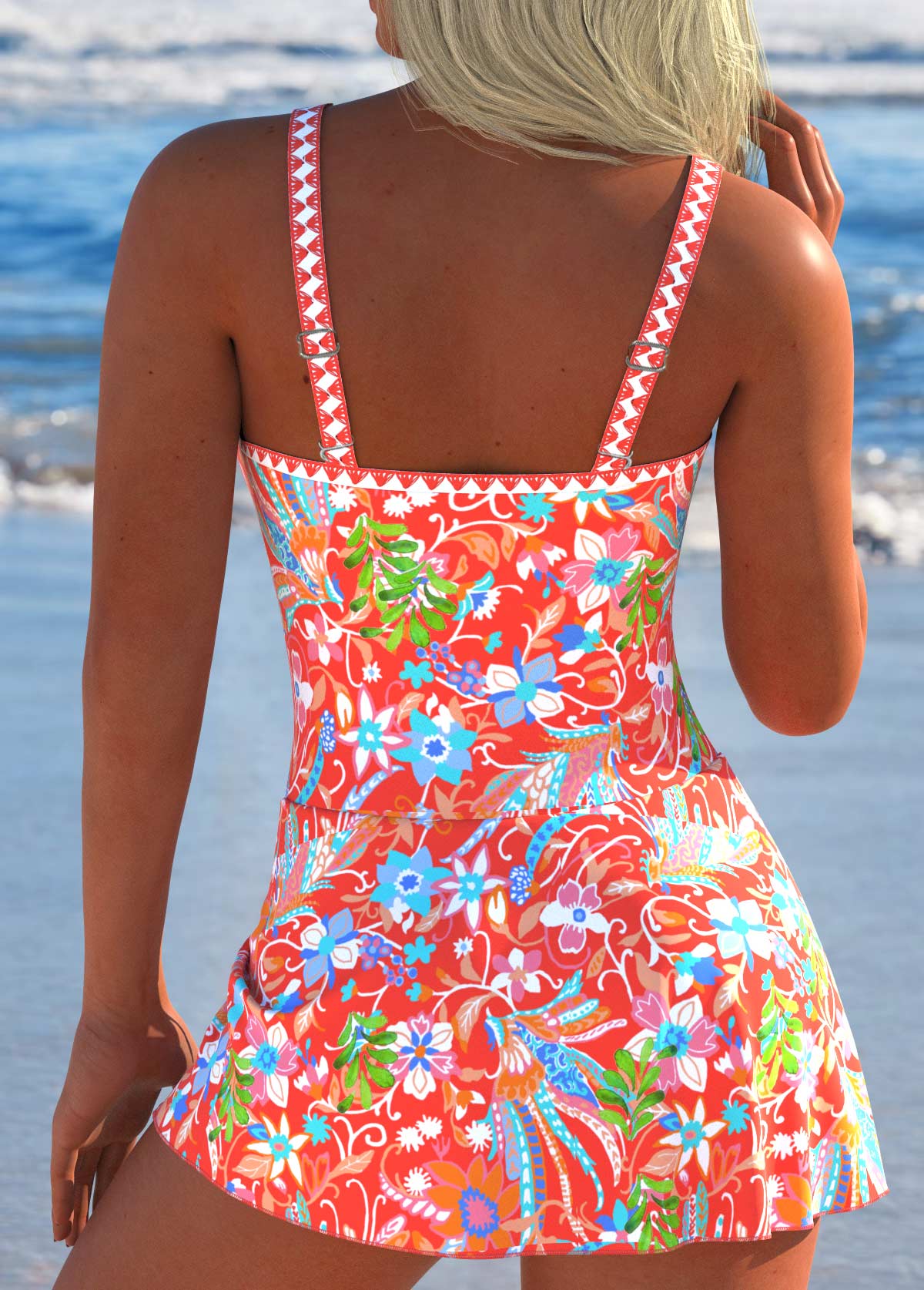 Random Floral Two-Piece One Piece Swimwear and Skirt