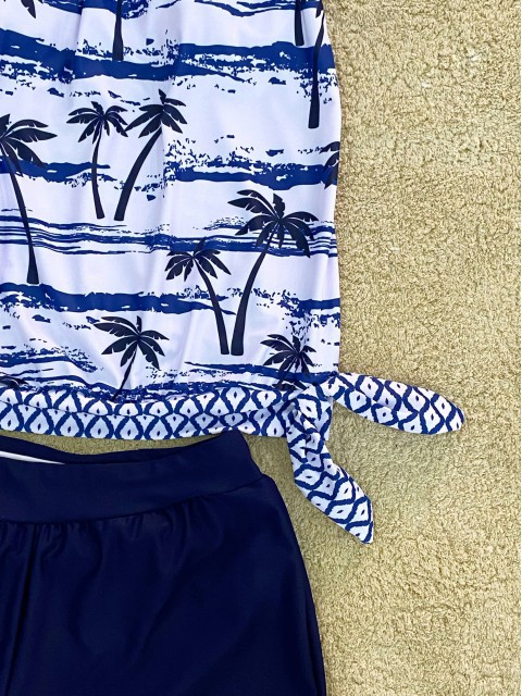 Home  /  Swimwear  /  Tankinis  /  Tankini Sets  /  Tie Geometric Print Sage Green Tankini Set