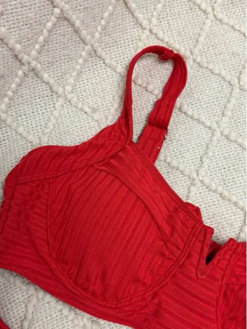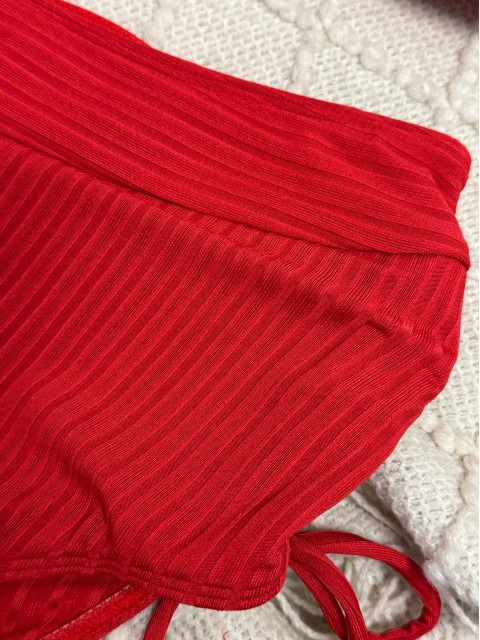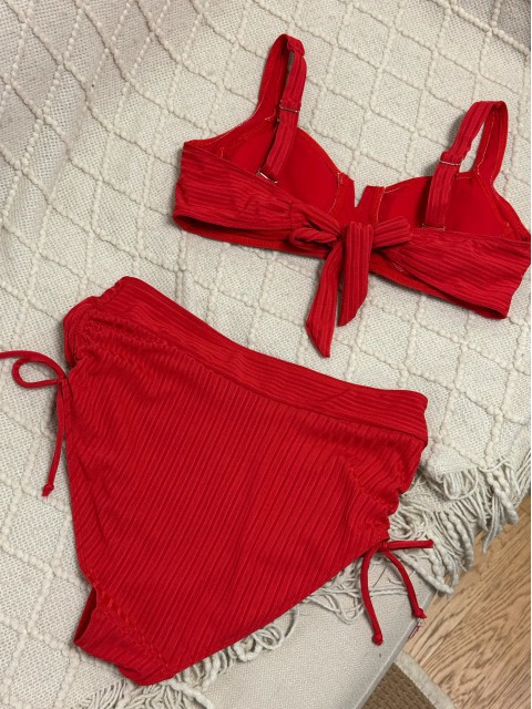 Make a splash in this eye-catching red bikini set. The top shapes and lifts for a flattering bust, while the high-waisted bottoms with side drawstrings offer a comfortable, adjustable fit. A perfect combination of style and confidence for your next beach day!