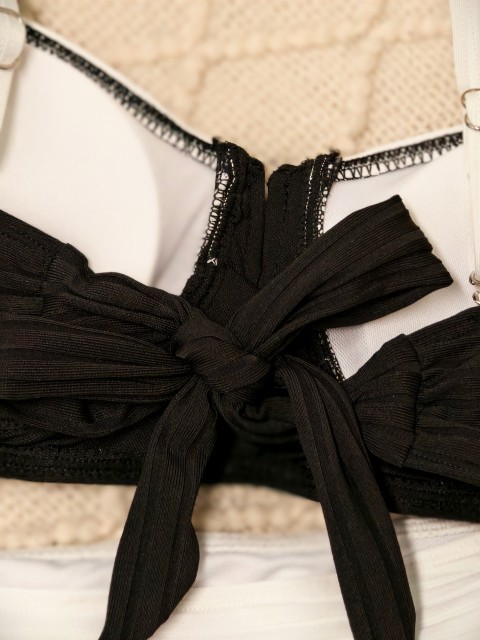 Bowknot Leaf Print Dusty Pink Bikini Set