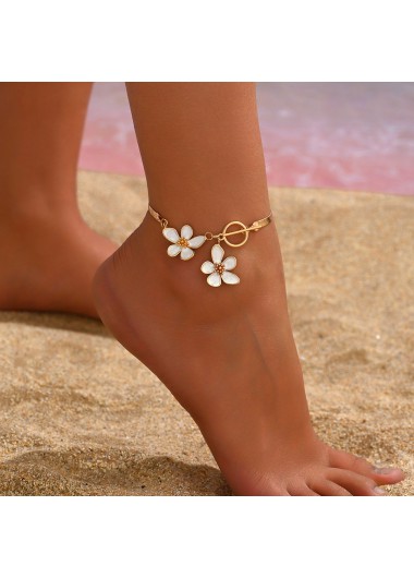 Added Successfully Golden Camellia Floral Design Alloy Anklet