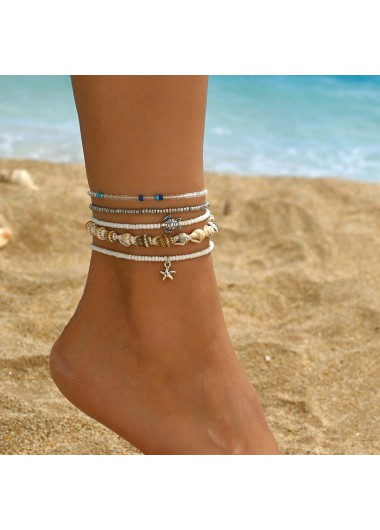 Added Successfully Beige Alloy Starfish Beaded Detail Anklet