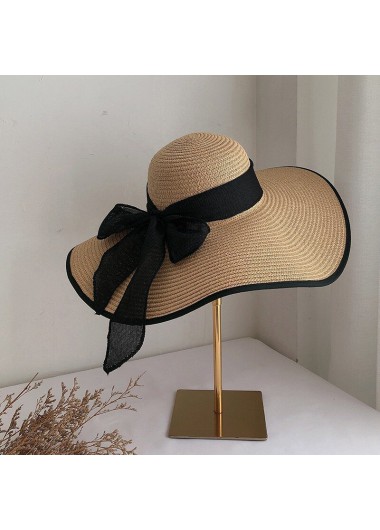 Light Camel Contrast Stitch Bowknot Visor Hat