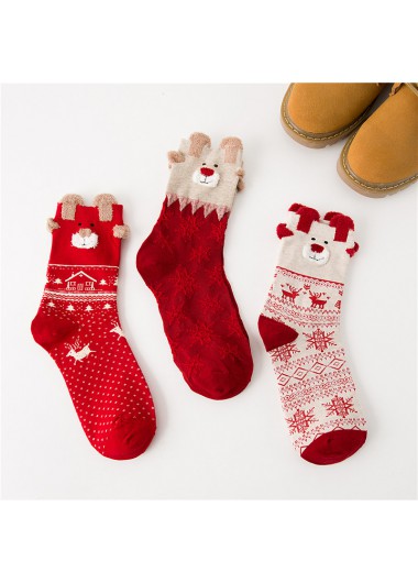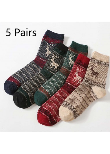 Christmas Multi Color Geometric Print Mid Calf Socks