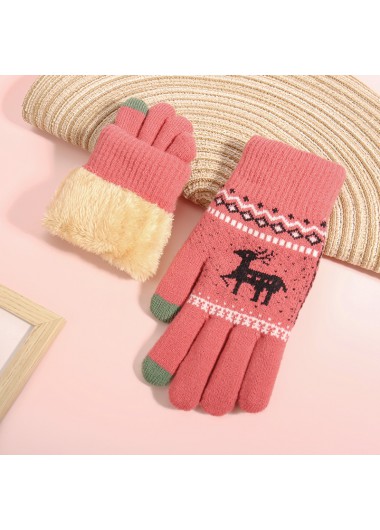 Christmas Dusty Pink Elk Print Wrist Warming Gloves