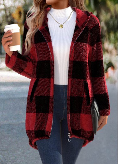Added Successfully Red Plaid Long Sleeve Hooded Coat