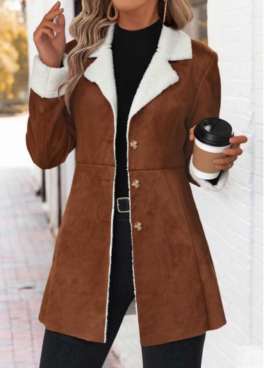 Added Successfully Dark Coffee Tummy Coverage Long Sleeve Lapel Coat